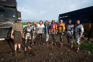 Tobias Capwell, Dominic Sewell, Philippa Langley and King Richard’s Knights on set
