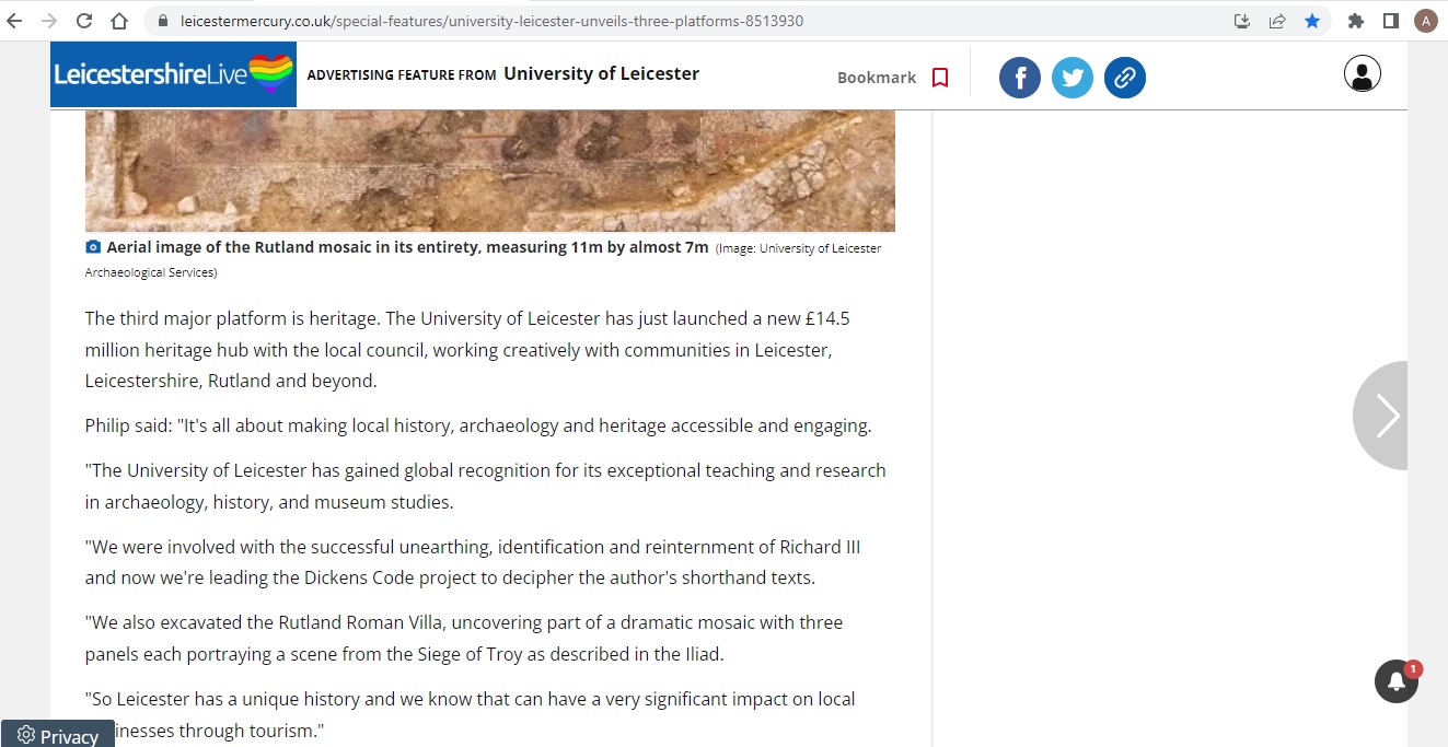 On 23 June 2023, Leicester University included the following statement in a full-page advertorial in the Leicester Mercury. The statement was made by the university's Pro Vice-Chancellor, Professor Philip Baker: